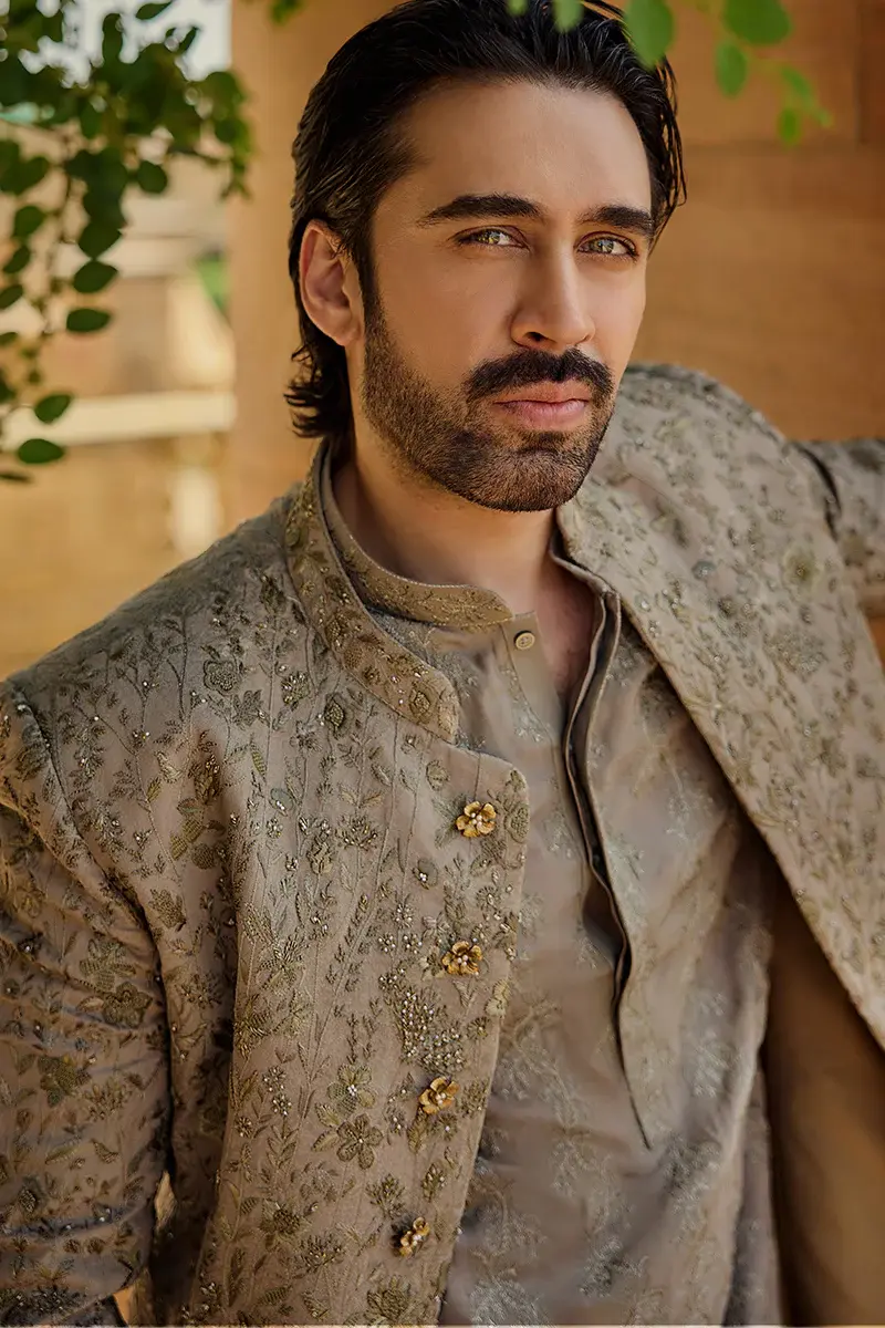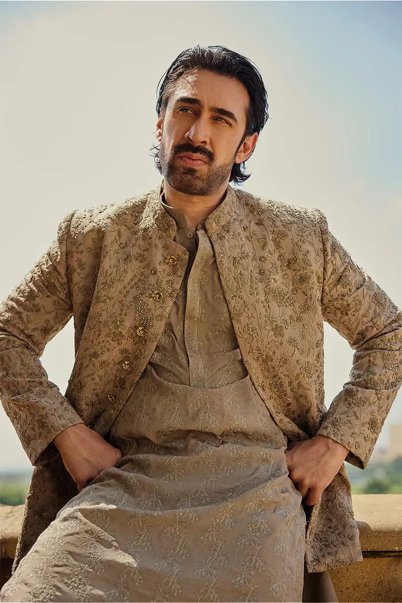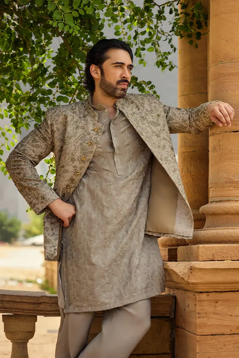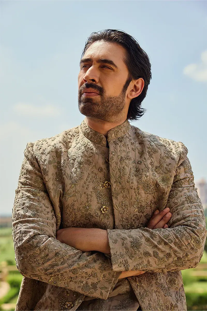 • Luxuriously embroidered Prince Coat for men by Gents Suiting by Fab.