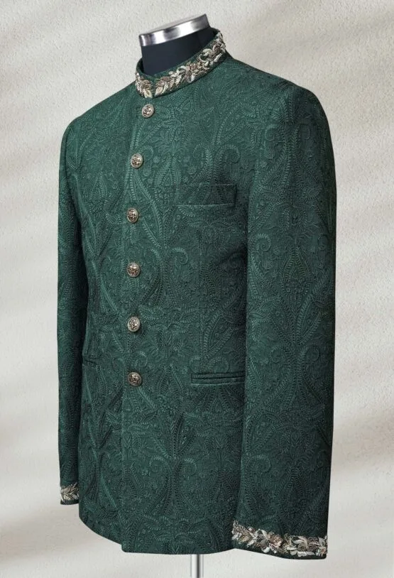 GREEN BROCADE PRINCE COAT – Luxurious Paisley Formal & Wedding Wear