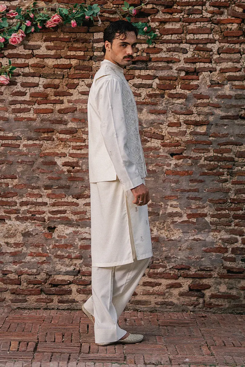 - Color: Luxurious Pearl White Embroidered Waist Coat (an ideal shade for grooms and festive attire)