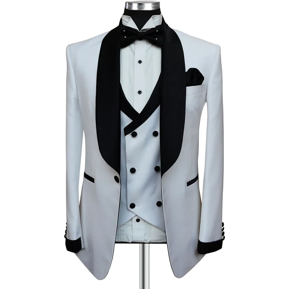 • Waistcoat: A stunning white double-breasted waistcoat (Suit Vest) with black button detailing completes this exquisite Three Piece Suit. The Waistcoat Suit design enhances the overall formal elegance.